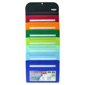El organizador desplegable Colorline con 7 divisiones es la solución ideal para mantener documentos y materiales clasificados y accesibles. Su formato permite colgarlo fácilmente en cualquier espacio, optimizando el orden en oficinas, aulas o el hogar. Fabricado con materiales resistentes y colores modernos. Simplifica la organización diaria y aprovecha al máximo cada rincón.