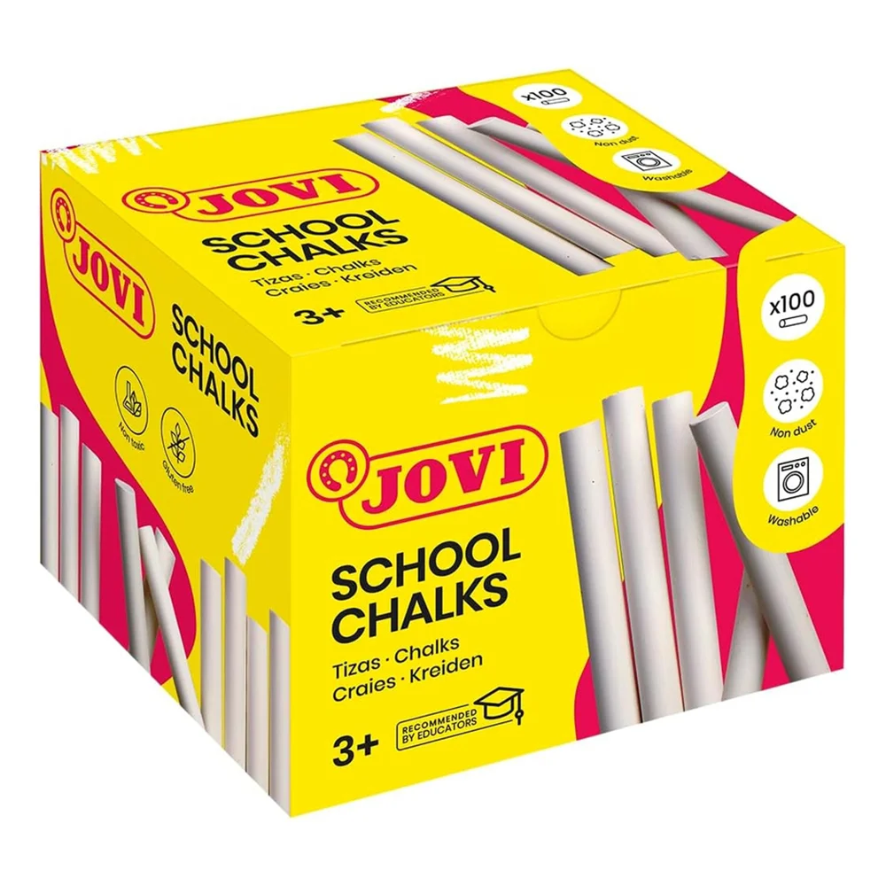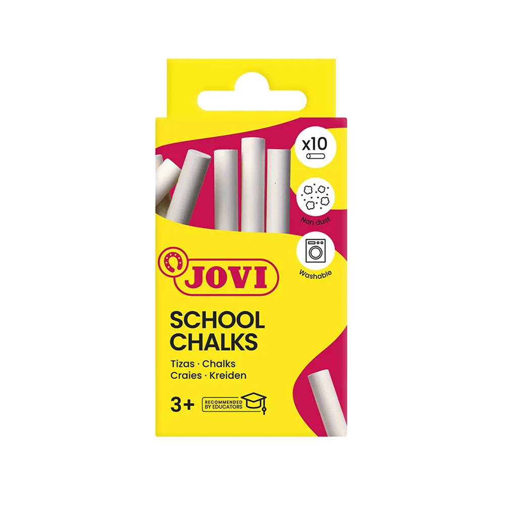 Las tizas blancas Jovi son compactas, resistentes y no generan apenas polvo, gracias a sus materias primas naturales de alta calidad. Ideal para colegios, ofrecen trazos nítidos y legibles, se borran fácilmente en seco y dejan poco resto en las manos. Disponibles en cajas de 10 y de 100 unidades, perfectas para toda aula o centro educativo.