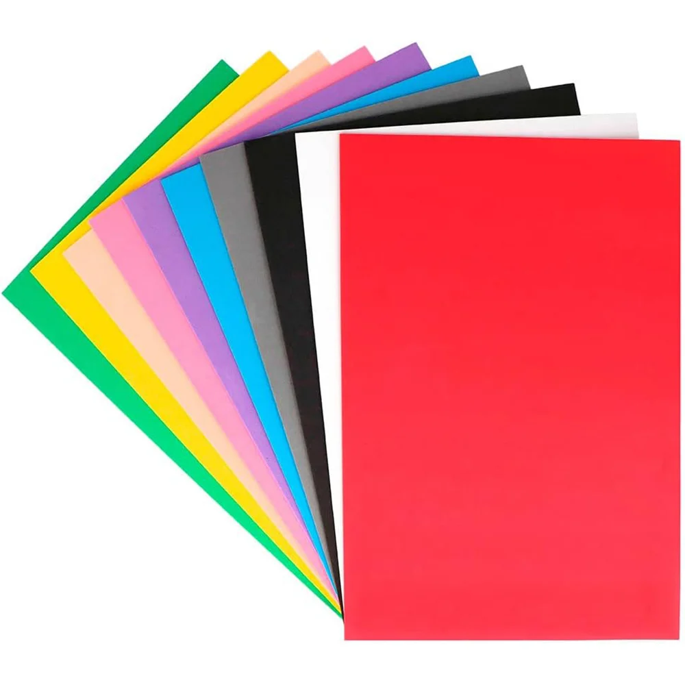 Goma EVA tamaño A4 (210 x 297 mm), en una variedad de colores vivos. Es un material suave, flexible, impermeable, fácil de cortar, pegar y pintar, ideal para manualidades, uso escolar o proyectos creativos en casa. Incluye colores surtidos como rojo, amarillo, gris, negro, naranja, lila, rosa, blanco, verde y azul. Perfecto para realizar máscaras, coronas, disfraces y todo tipo de manualidades creativas.