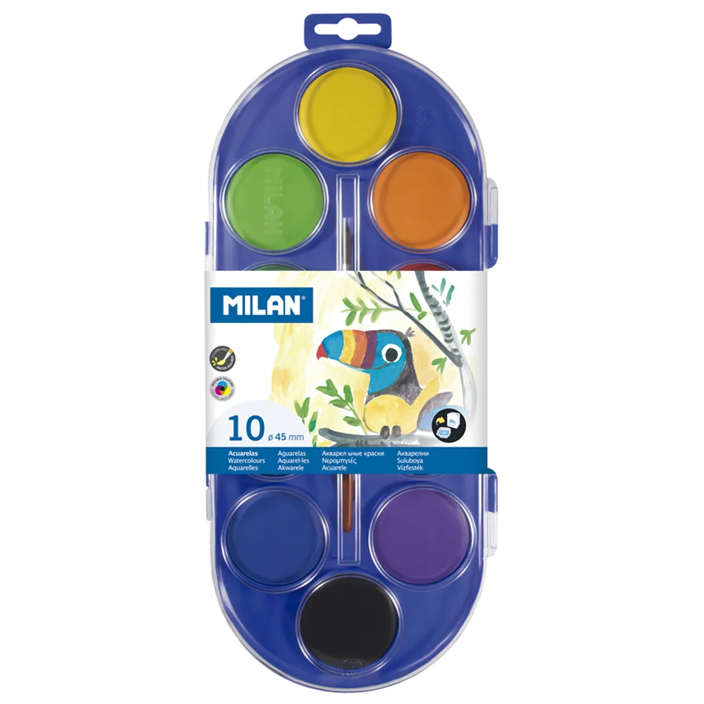 Las acuarelas Milan de 45 mm ofrecen un formato extra grande, con pastillas mucho mayores que las estándar, para disfrutar de más color y duración. Sus tonos vivos y de excelente pigmentación se mezclan fácilmente, logrando efectos suaves y luminosos. Ideales para estudiantes y artistas que buscan resultados profesionales en cada trazo.