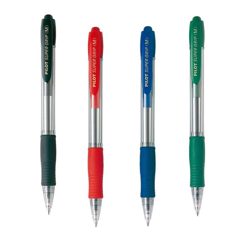 Los bolígrafos Pilot Super Grip ofrecen una escritura precisa y fluida gracias a su punta de 0,4 mm. Su agarre ergonómico garantiza comodidad incluso en usos prolongados. Disponibles en cuatro colores (azul, negro, rojo y verde), son ideales para oficina, estudio o tareas creativas.