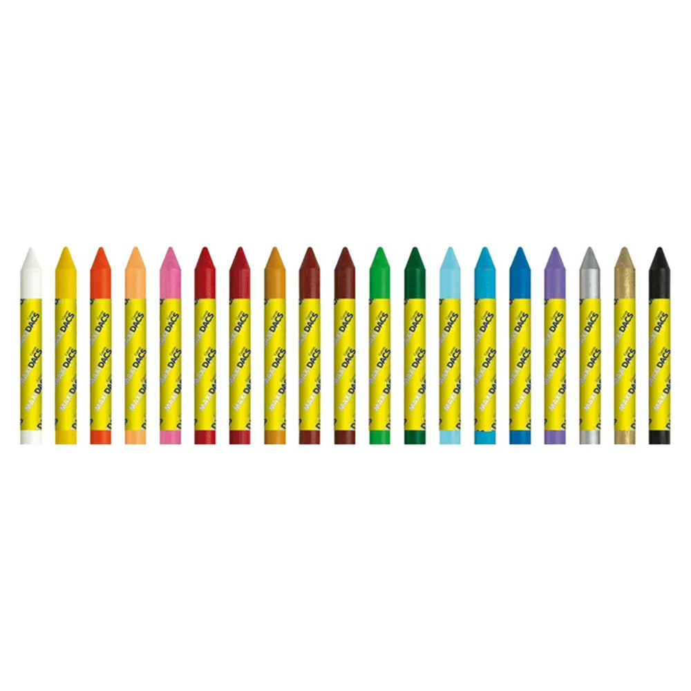 El estuche MaxiDacs Alpino incluye 12 ceras blandas unicolor de gran tamaño (120 mm x 14 mm), ideales para artistas. Con trazo suave y cubriente, permiten mezclar colores y duran más tiempo. Etiqueta protectora para no mancharse los dedos. Perfectas para decorar grandes superficies con facilidad.
