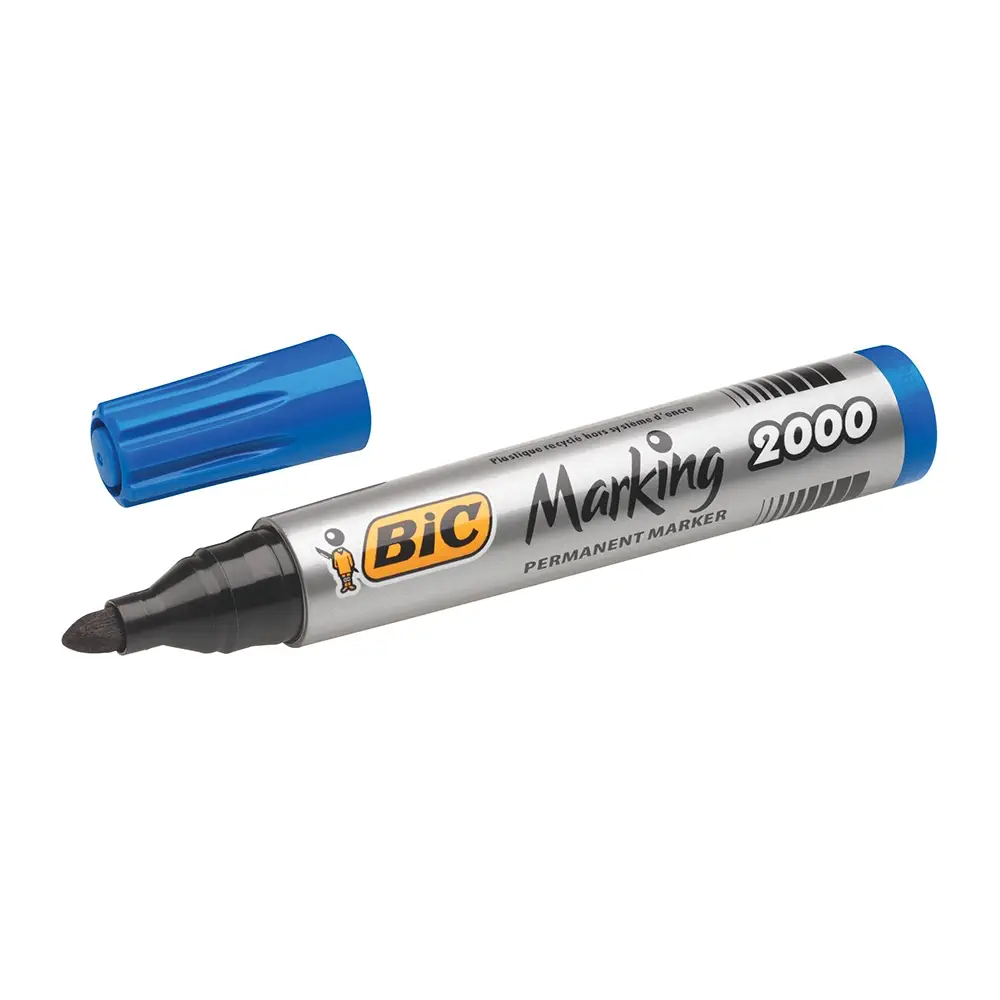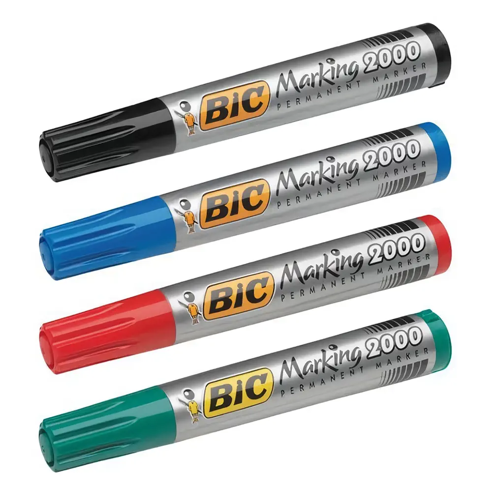 Los rotuladores permanentes BIC Marking 2000 ofrecen un trazo nítido y constante de 1,7 mm gracias a su punta redonda de alta resistencia. Su tinta permanente proporciona colores intensos y duraderos sobre diferentes superficies. Disponibles en negro, azul, rojo y verde, son ideales para uso profesional, escolar o doméstico.