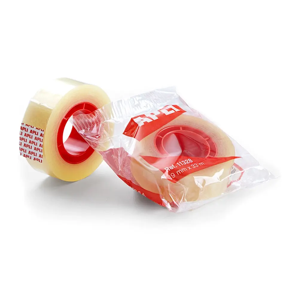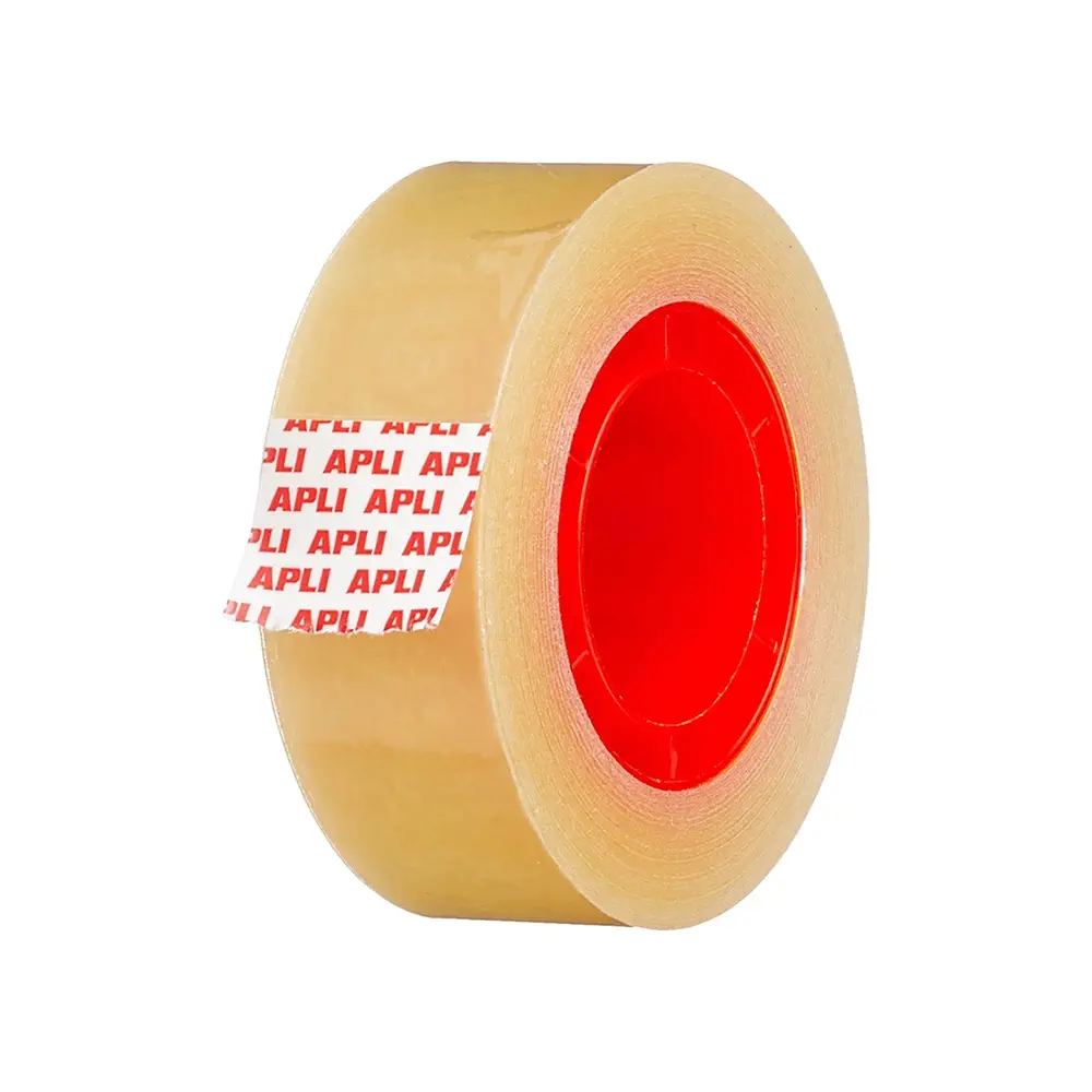 La cinta adhesiva Apli está disponible en dos medidas: 33 mm x 19 metros o 66 mm x 19 metros, ofreciendo versatilidad para embalaje ligero o pesado. Su adhesivo de alta calidad asegura fijación duradera en cartón, papel y plásticos, con posibilidad de dispensado en porta rollos para mayor comodidad. Ideal para oficinas, y uso doméstico, garantiza sellados resistentes sin residuos.