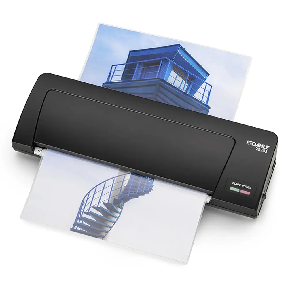 La plastificadora A3 Dahle es una herramienta fiable para proteger documentos, carteles y materiales gráficos en oficinas, centros educativos y copisterías. El modelo de 2 rodillos, referencia 70103, incorpora rodillos de silicona térmicos y permite laminar con calidad fotográfica hasta un grosor estándar de funda, ideal para un uso frecuente y versátil.​